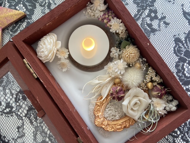 過去の暮らしの道具 HOLLYHOCK 【出展内容】 火を灯さないアロマワックスサシェ、絵本サシェなど 火を灯さず、目と香りで楽しんで頂く、アロマワックスサシェです。 中にLEDキャンドルを入れて淡い光を楽しんだり、玄関やトイレに置いて香りを楽しんだりしていただけます。